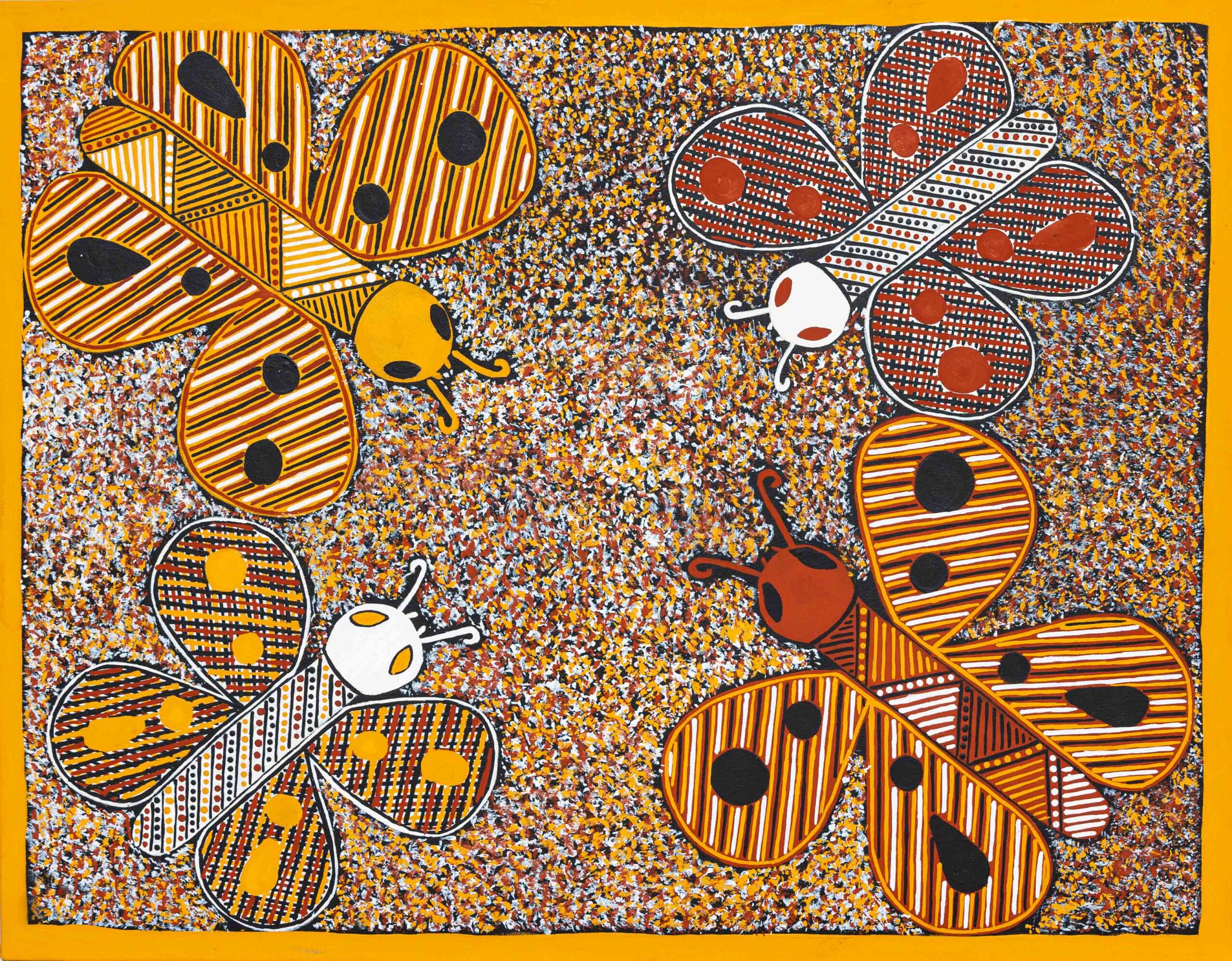 Kwarinkwaringa relates to all butterflies. We see the kwarikwaringa mostly in dry season time when they eat the flowers that come up after the rain. We have many different types and colours of kwarikwaringa and Tiwi people believe that sometimes when they see kwarikwaringa, it gives them a sign – sometimes good sign, sometimes bad sign and usually it’s about family.